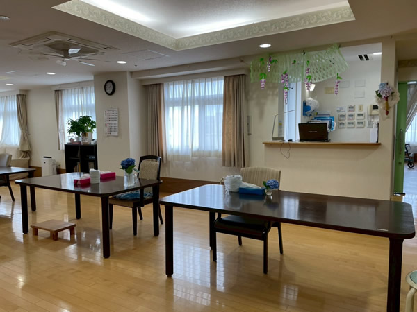 入居者様2名に対してスタッフ1名以上の手厚い人員配置。日々のレクリエーションも充実しています。大浴室では、壁一杯の富士山の絵を眺めながら銭湯気分で入浴を楽しめます。駅に近く、ご家族様が立ち寄りやすい立地です。